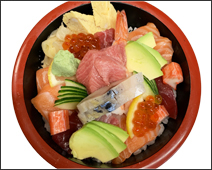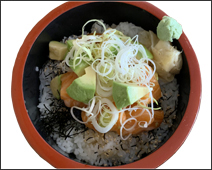 | sashimi sur bol de riz vinegré | sashimi saumon sur bol de riz vinegré | sashimi saumon et thon sur bol de riz vinegré | |||||