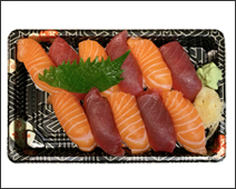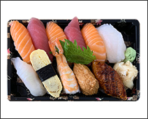 | assortiment de sushi | sushi saumon et thon | sushi saumon | |||||